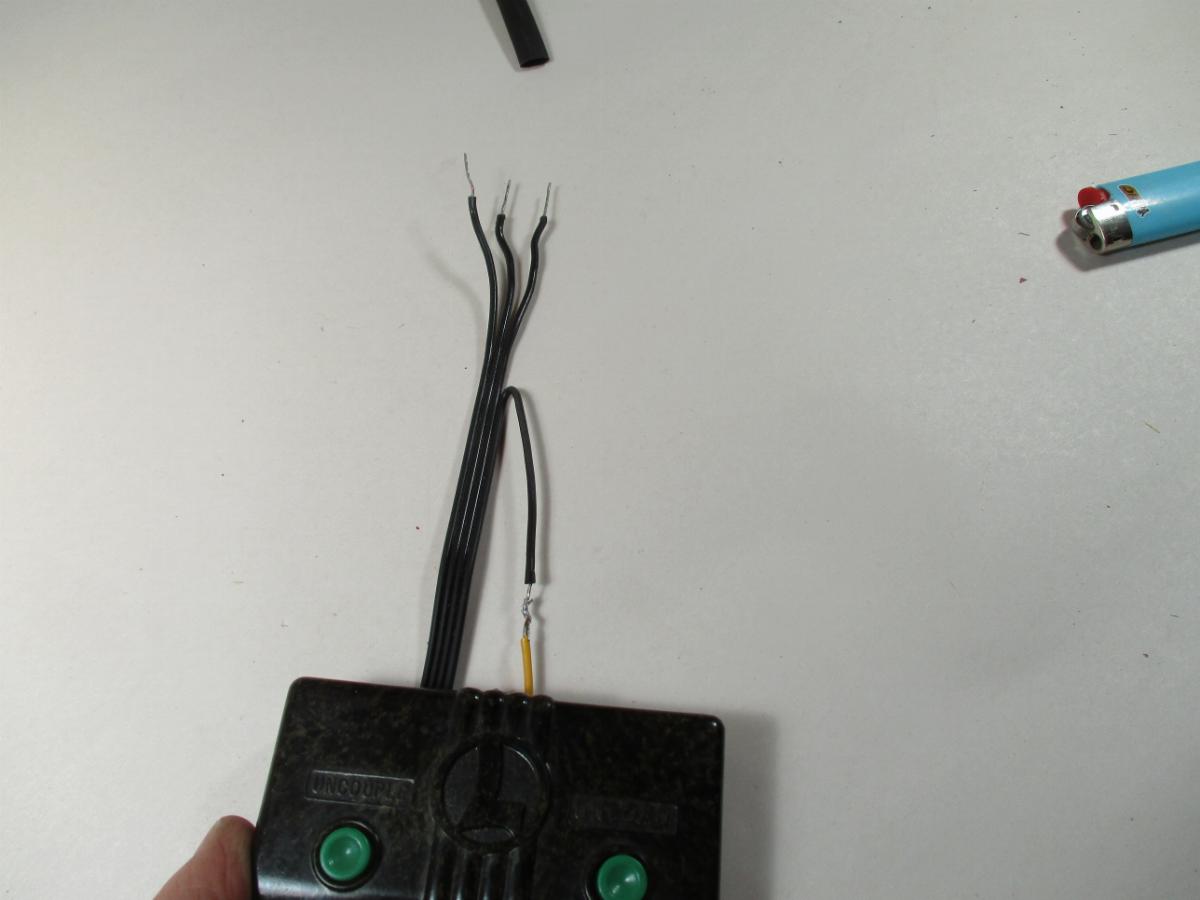 On a RCS track, the number 4 screw terminal is connected to the center rail and provides positive current to the controller. Peel the 4th wire back and soldier a feeder wire to it so it looks like this: