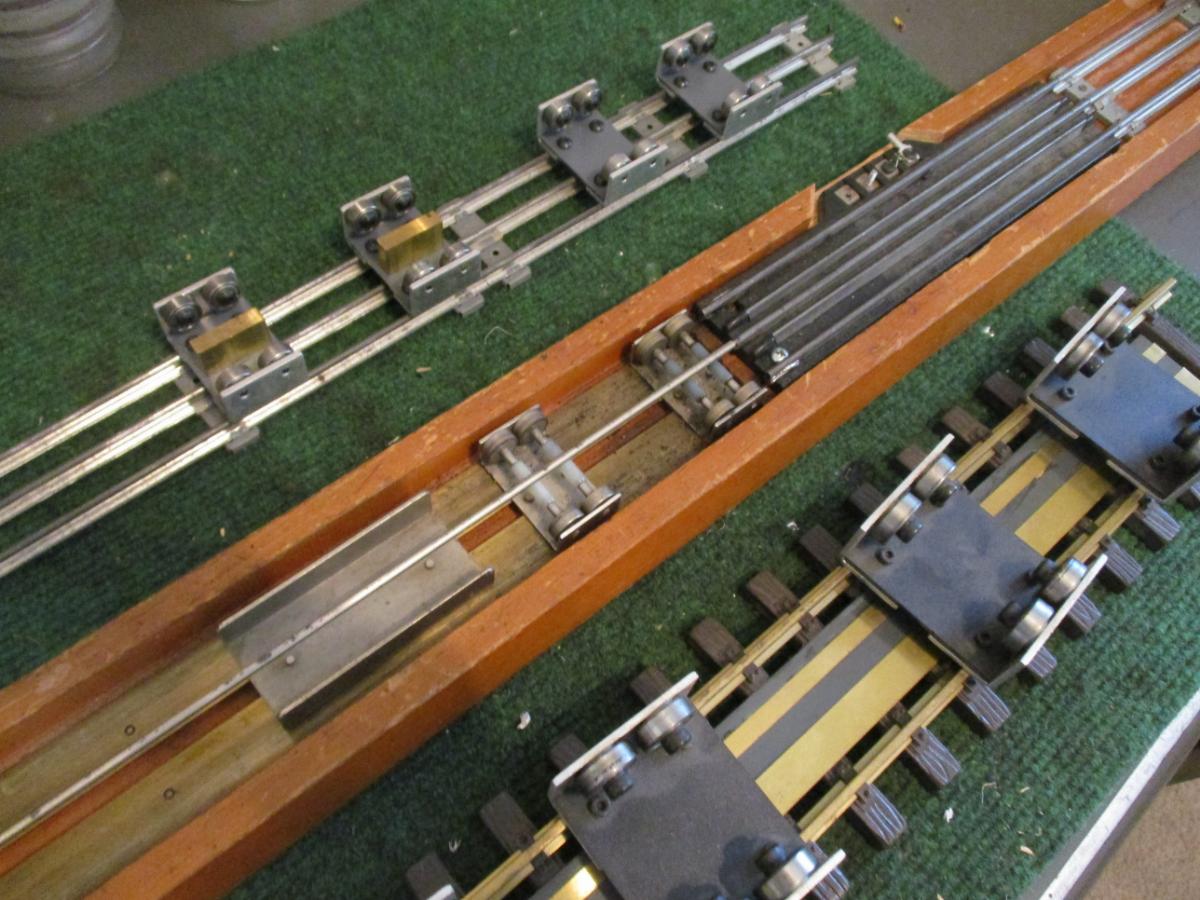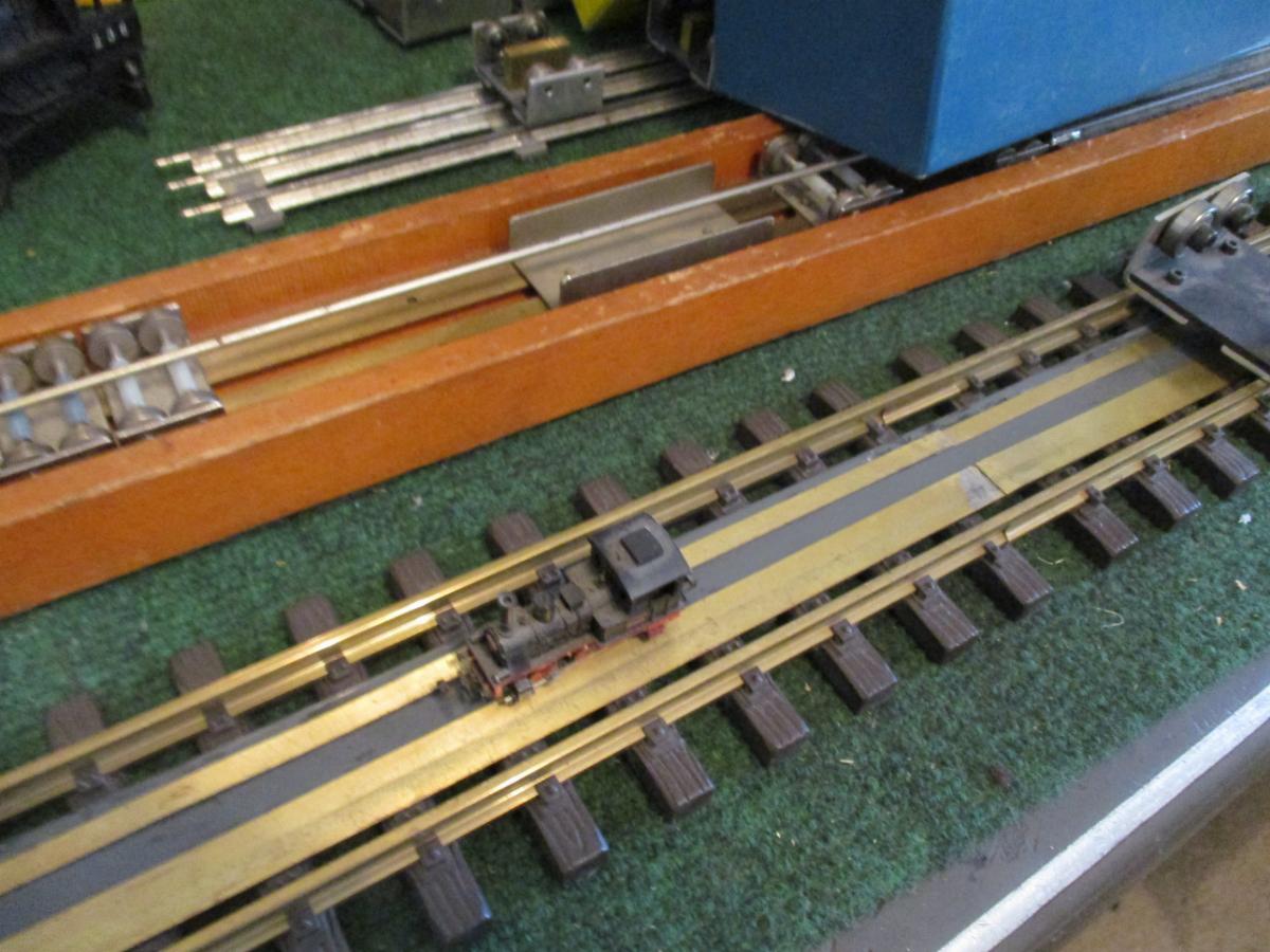 The big LGB track has strips of brass glued to the ties. Those are to test smaller trains. With the smaller trains it's just too hard to put it on the track to test it.