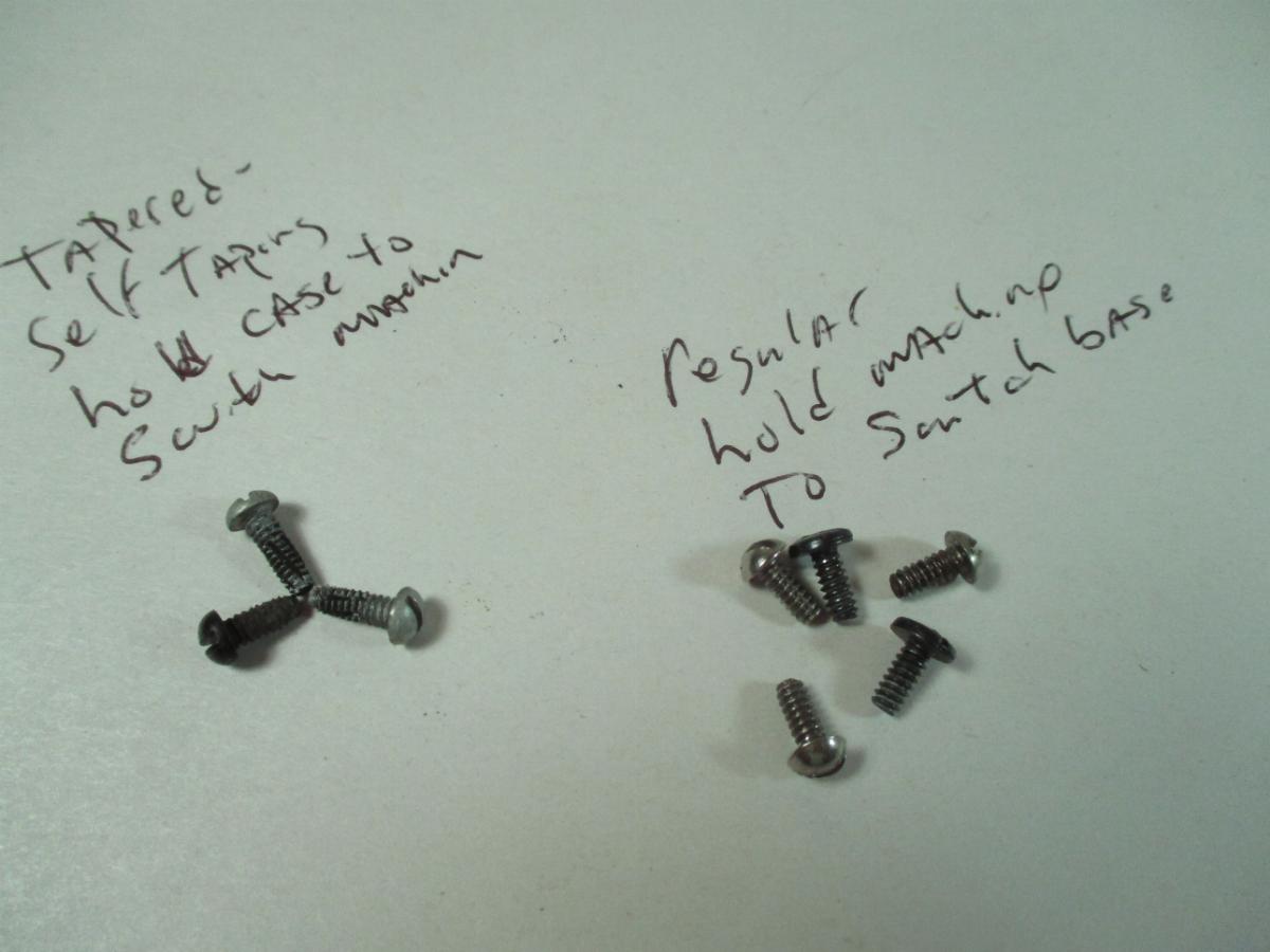 Here's instructions for 022 switches in a PDF.After taking the switch machine off the switch, take the top off the motor. There are two different types of screws - the machine screws have the same threads all the way down the screw and go into the switch itself. The other screws have tapered threads and go into the plastic cases. The tapered threads are easy to spot because they usually have lines perpendicular to the threads. You might have lock washers on your screws.