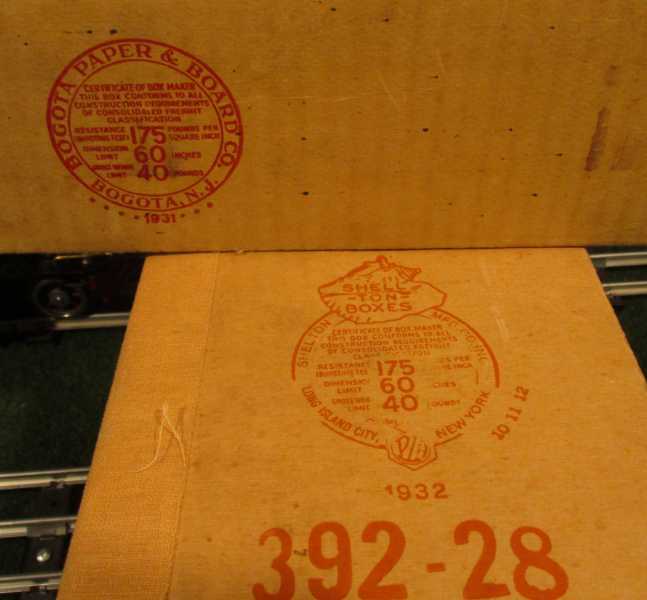 Car boxes are all dated 1931, loco box dated 1932, tender box not dated. Note tender box has X. This might refer to a different drawbar for the 392E loco rather than the 384?