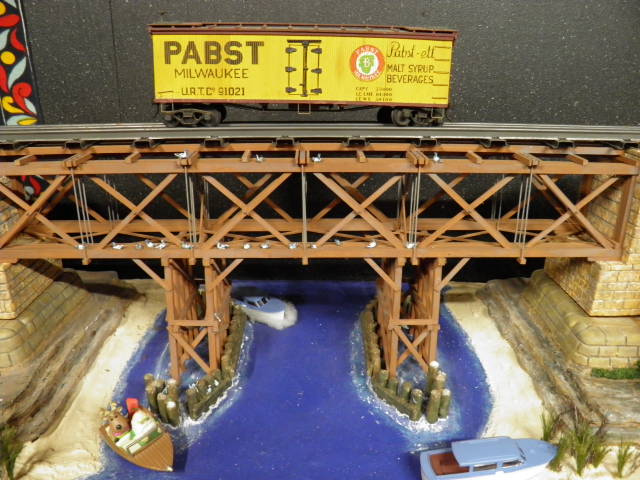 The blue I have to tone down, and the trestle just sits on the water for now. Nothing secure right now.