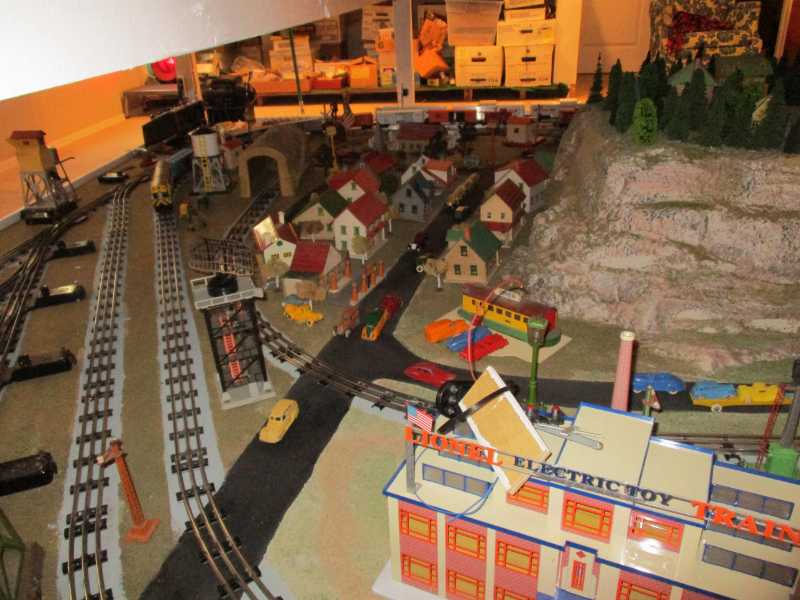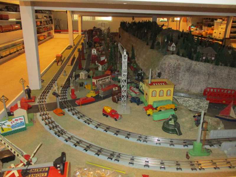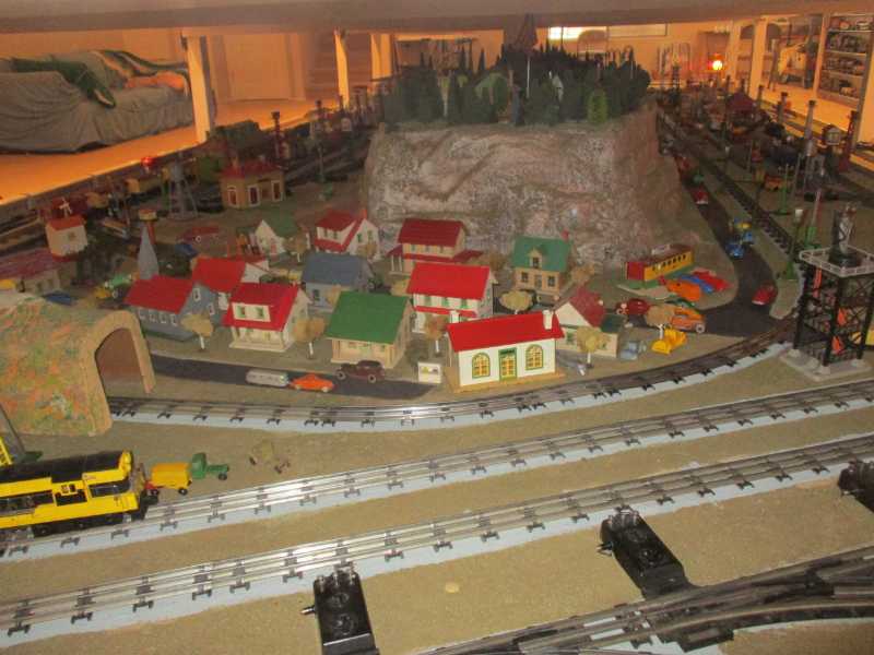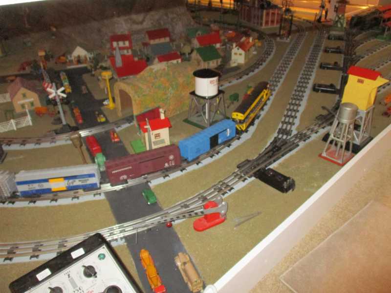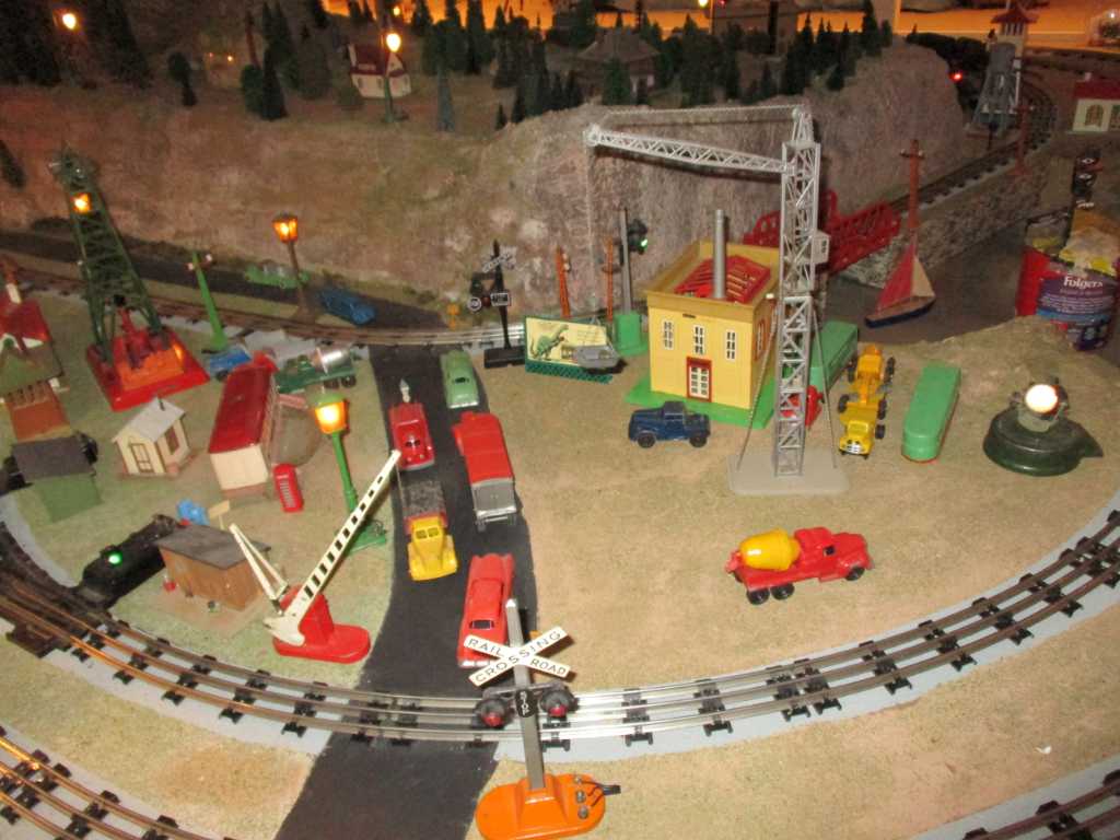 The trains are running well. I've my Tootsietoys and placed most of them on the layout. I set aside the mid 1930s larger cars with white wheels for the 1930s prewar O gauge layout, otherwise I put what I have out. I sold most of the postwar Tootsietoys and the prewar firetrucks when I bought the house. What I have left is out. . .
