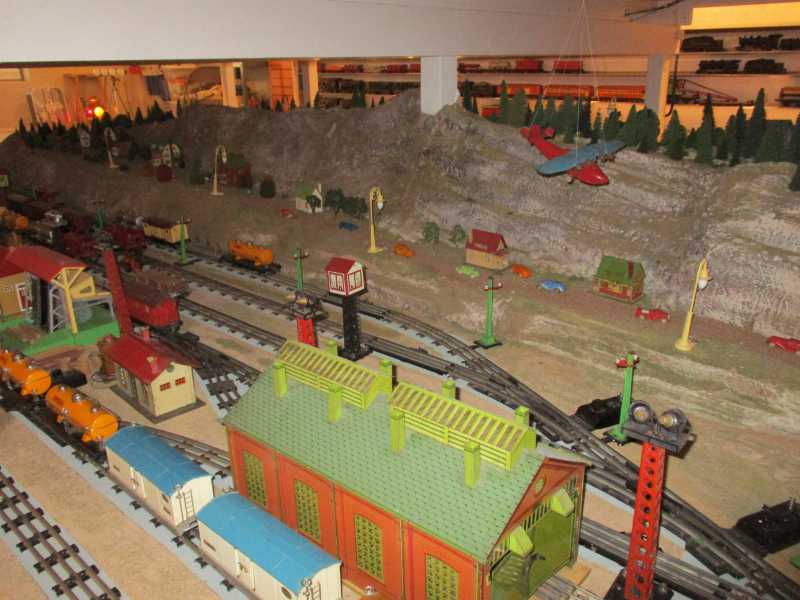 I've been working on the standard gauge layout and otherwise distracted by life's chores. This weekend I mounted some Marx or Wyandoote planes over the layout. I think thay are Wyandotte as they have no markings and Marx was pretty good about marking his wares. The O layout runs quite well.