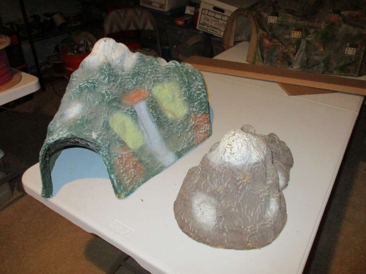Here's a Life Like tunnel from the mid 1950s and a matching mountain. These are made from compressed paper or sawdust. Very light and sturdy.