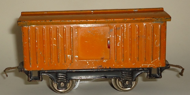 That car seems to be the earliest boxcar I have. It has lettering on both ends and wide wheels.