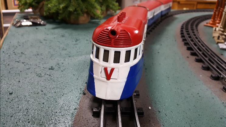 From the matching low-hood couplers, I assume it was proposed 1941 or 42, just before production switched to US Navy instruments. The Victory streamliner, R/W/B Flying Yankee, had a similiar heritage, except that it actually made it to an advance catalog in 1942. I have a recreation, from the 1980's of the Victory set.