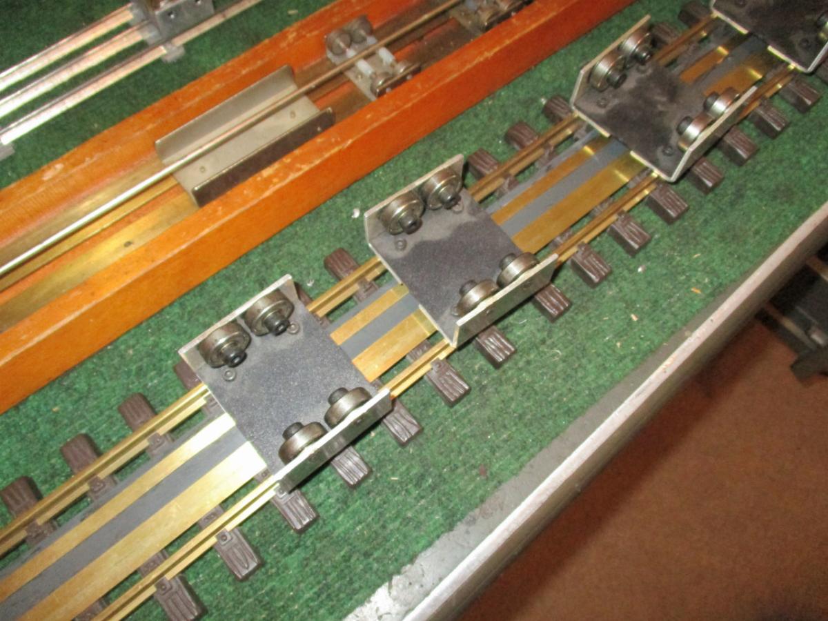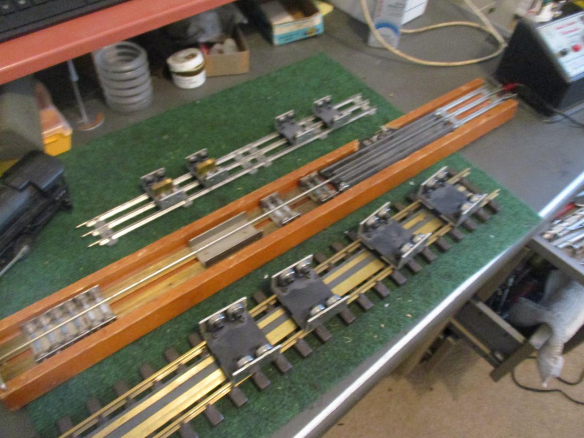 The big LGB track has strips of brass glued to the ties. Those are to test smaller trains. With the smaller trains it's just too hard to put it on the track to test it.