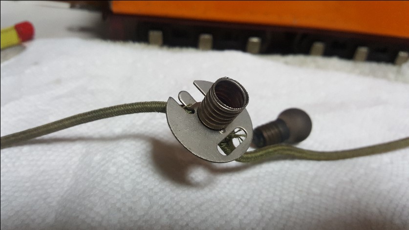 Here's the contact end- a cotter pin on an end of the wire with the insulation bound on the end: