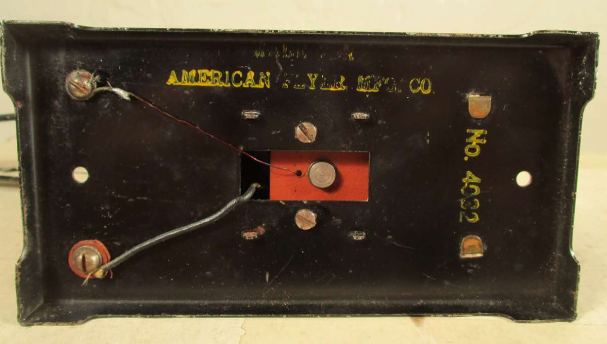 This one is interesting because normally the ones for American Flyer have maroon bases and green arms. All black is harder to find. 4032 means it came with a Standard gauge trip, the same thing comes with 2032 for O gauge.