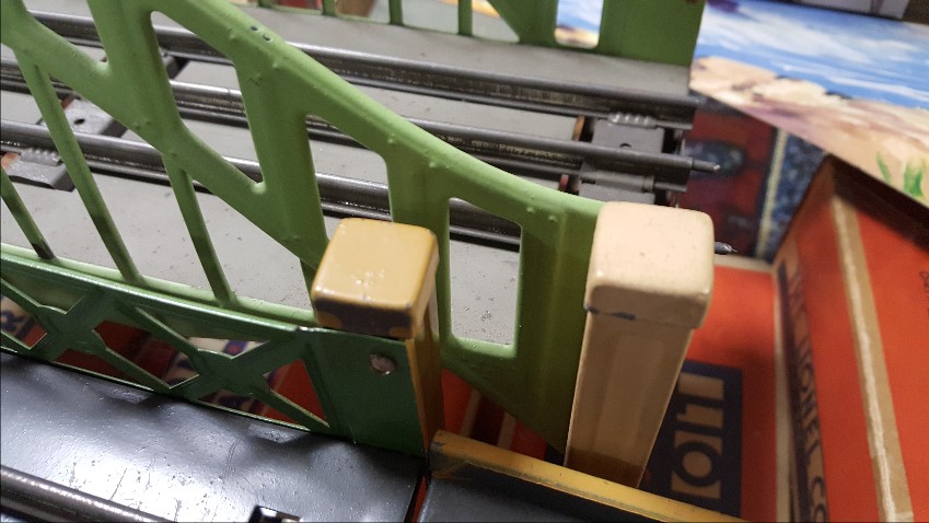 Has anyone else seen this variation of the 100-series bridges? They have plain flat tops on corner posts of the center span, no punched hole with wood finial trim.