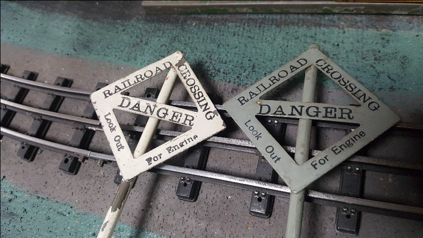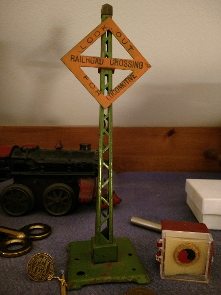 About the 068 warning sign.   I know Lionel made litho signs from about 1931 in the Winner, Lionel-Ives and later Lionel JR lines. They also made litho signs for Hafner. Those are white with black lettering. Yours is orange with black lettering. I'll have to dig out a Lionel JR sign so we can check the lettering.