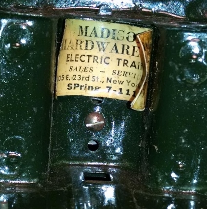 It must have been common for shops in the teens and 1920's to add their business info to items. Here are 2 different ones, a sticker and a decal for an Electric shop in Cincinnati. They are on the underside of 2 #29 MFG daycoaches.