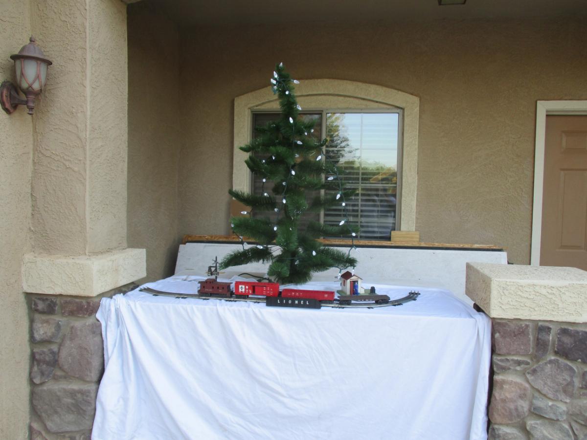 I just set up a little layout on my front porch. That's a genuine Mr. Christmas tree from the mid 1960s. I even have the original box!